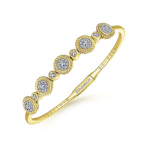 14K Yellow Gold Bangle with Twisted Rope Pavé Diamond Stations
