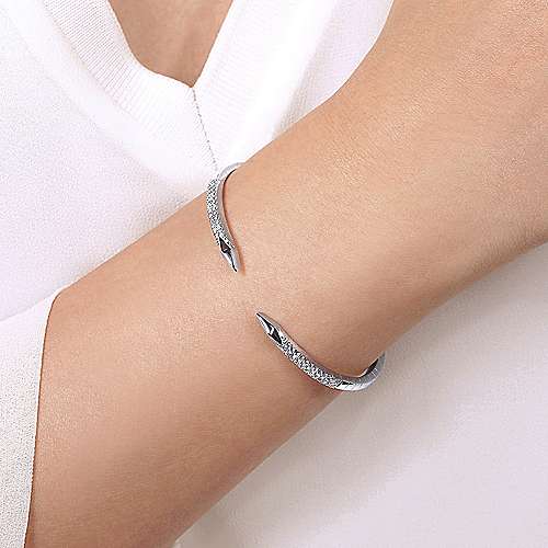 Split 14K White Gold Diamond Bangle with Pyramid Rhombus Accents