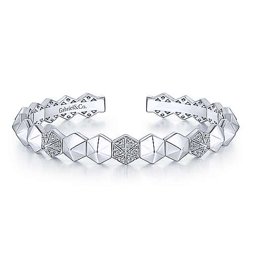 14K White Gold Hexagonal Pyramid Diamond Pavé Split Bangle