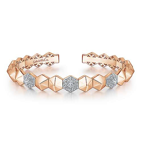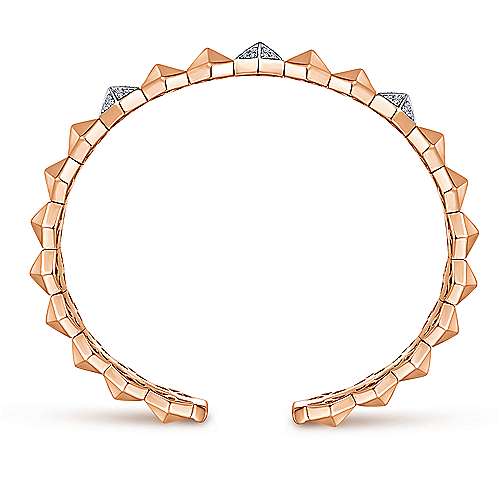 14K Rose Gold Haxagonal Pyramid Bangle with Pavé Diamond Accents.