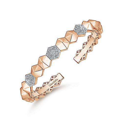 14K Rose Gold Haxagonal Pyramid Bangle with Pavé Diamond Accents.