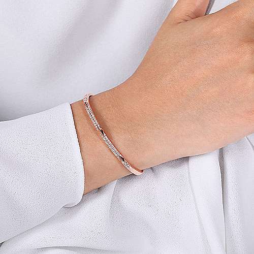 14K Rose Gold Diamond Bangle with Pyramid Rhombus Stations