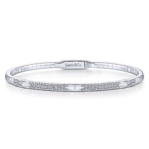 14K White Gold Diamond Bangle with Pyramid Rhombus Stations