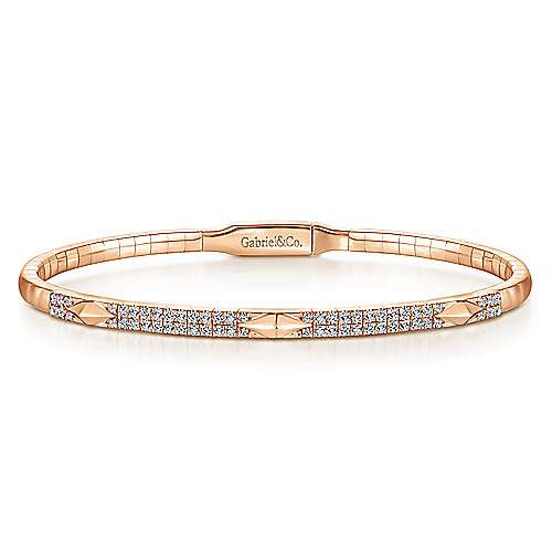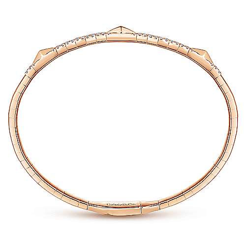 14K Rose Gold Diamond Bangle with Pyramid Rhombus Stations