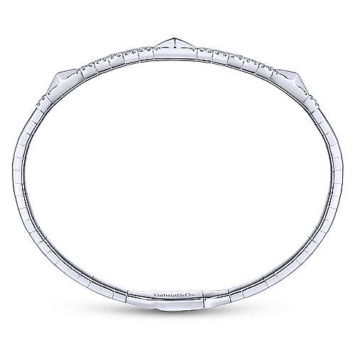 14K White Gold Diamond Bangle with Pyramid Rhombus Stations