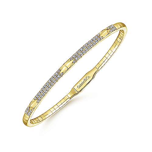 14K Yellow Gold Diamond Bangle with Pyramid Rhombus Stations