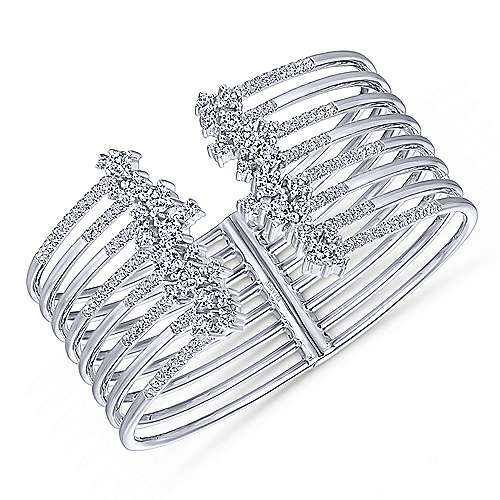 Split 18K White Gold Multi Row Diamond Bangle