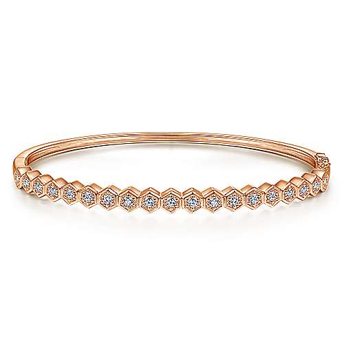 14K Rose Gold Hexagon Set Round Diamond Bangle