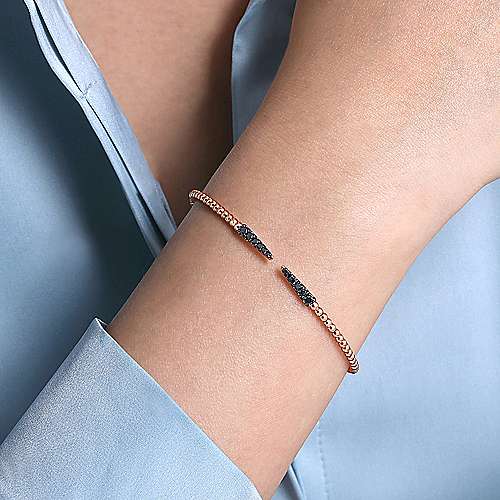 14K White-Rose Gold Black Diamond Bangle