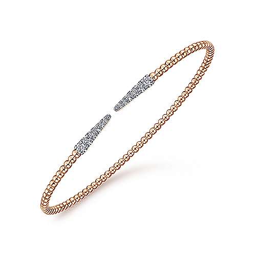 Split 14K Rose Gold Bujukan Bead Cuff Bracelet with Diamond Pavé Spikes