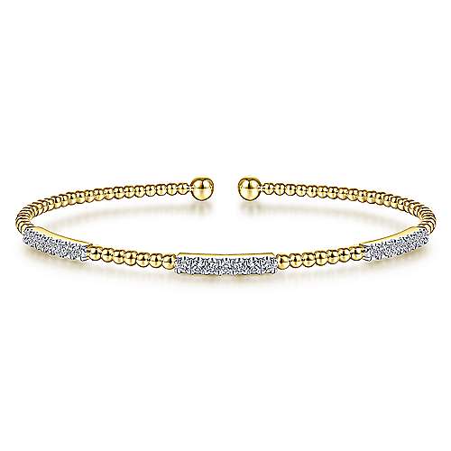 14K Yellow Gold Bujukan Bead Cuff Bracelet with Diamond Pavé Stations