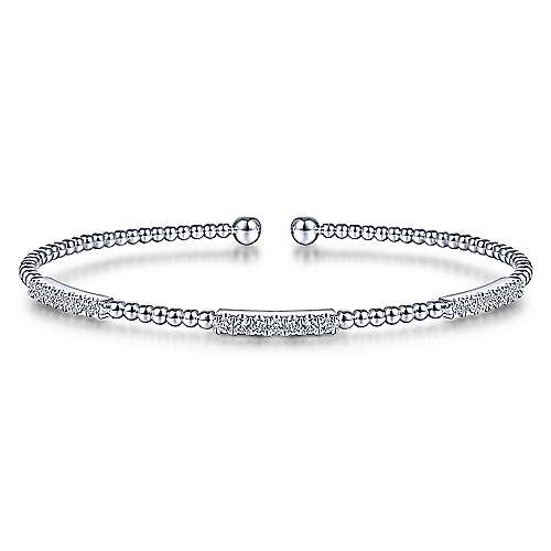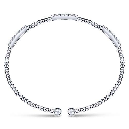 14K White Gold Bujukan Bead Cuff Bracelet with Diamond Pavé Stations