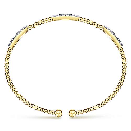 14K Yellow Gold Bujukan Bead Cuff Bracelet with Diamond Pavé Stations