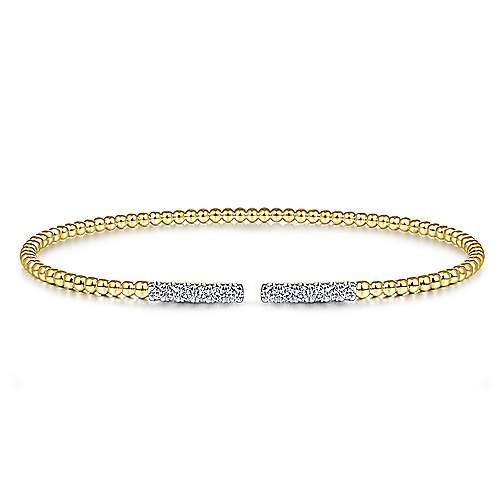 14K Yellow Gold Bujukan Bead Cuff Bracelet with Diamond Pavé Bars