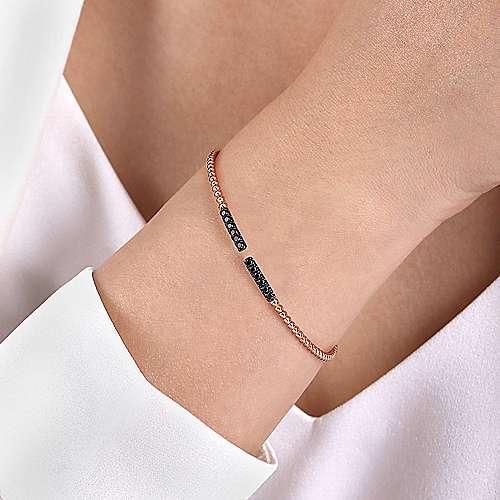 14K White-Rose Gold Black Diamond Bangle