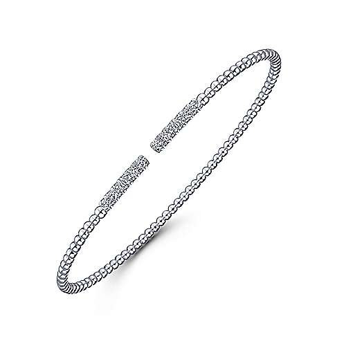 14K White Gold Bujukan Bead Cuff Bracelet with Diamond Pavé Bars
