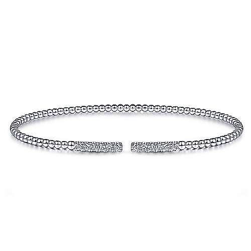 14K White Gold Bujukan Bead Cuff Bracelet with Diamond Pavé Bars