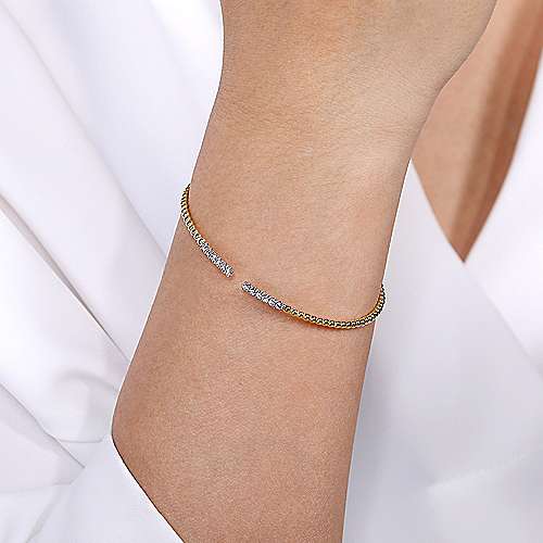14K Yellow Gold Bujukan Bead Cuff Bracelet with Diamond Pavé Bars