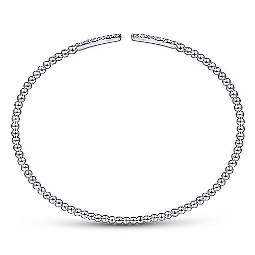 14K White Gold Bujukan Bead Cuff Bracelet with Diamond Pavé Bars