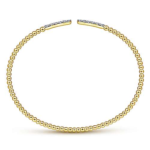 14K Yellow Gold Bujukan Bead Cuff Bracelet with Diamond Pavé Bars