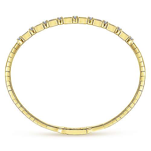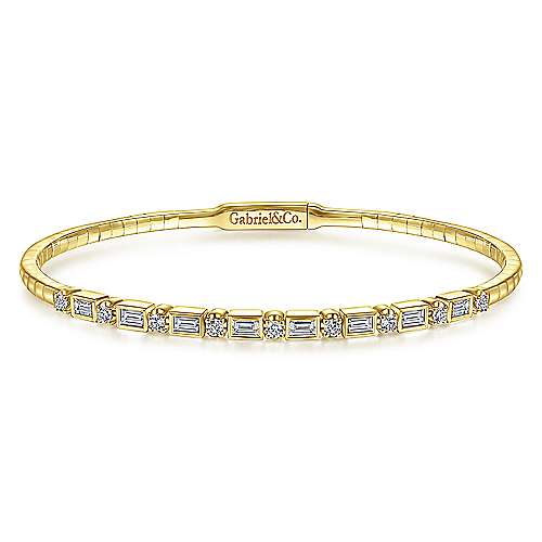 14K Yellow Gold Alternating Baguette and Round Diamond Bangle