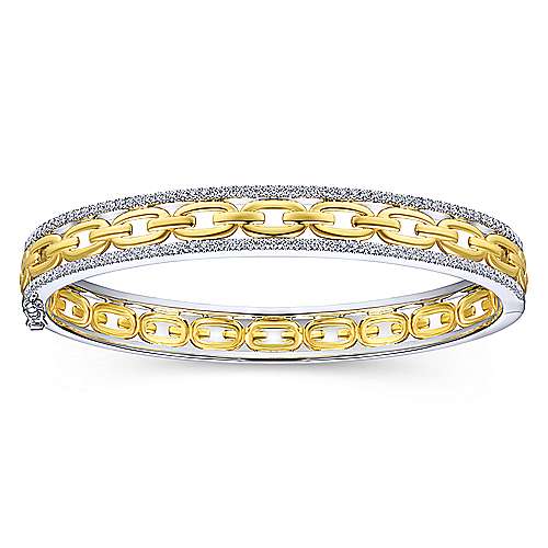 14K Yellow-White Gold Chain Link Bangle with Diamond Frame