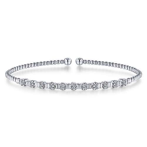 14K White Gold Bujukan Bead Cuff Bracelet with Diamond Stations