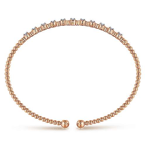 14K Rose Gold Bujukan Bead Cuff Bracelet with Diamond Stations