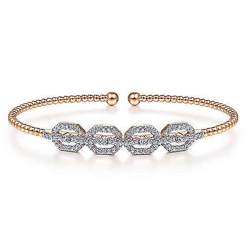 14K Rose Gold Bujukan Bead Cuff Bracelet with Diamond Pavé Links