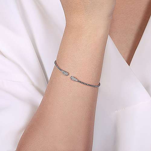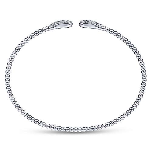 14K White Gold Bujukan Bead Cuff Bracelet with Diamond Pavé Teardrops