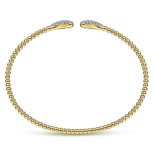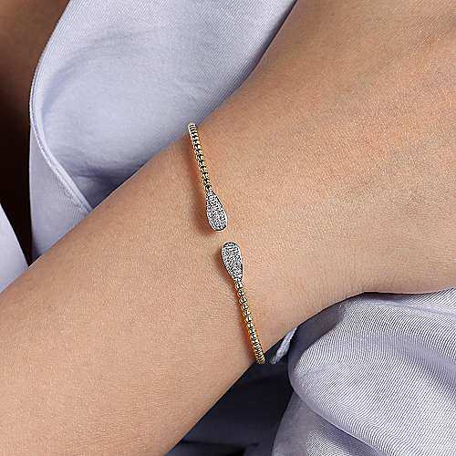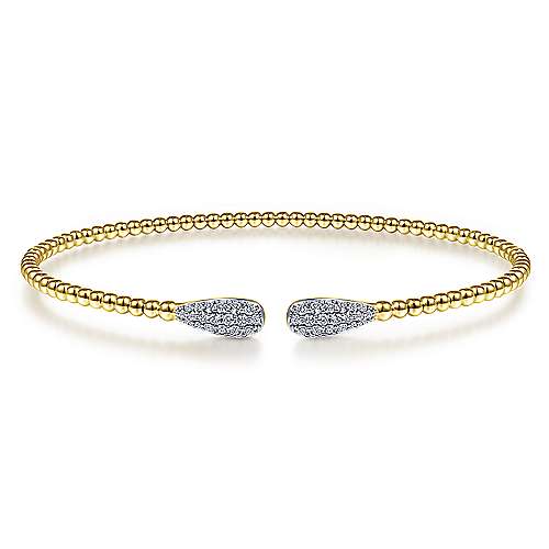 14K Yellow Gold Bujukan Bead Cuff Bracelet with Diamond Pavé Teardrops