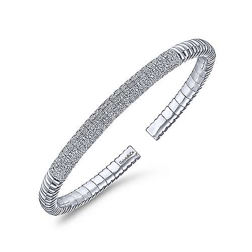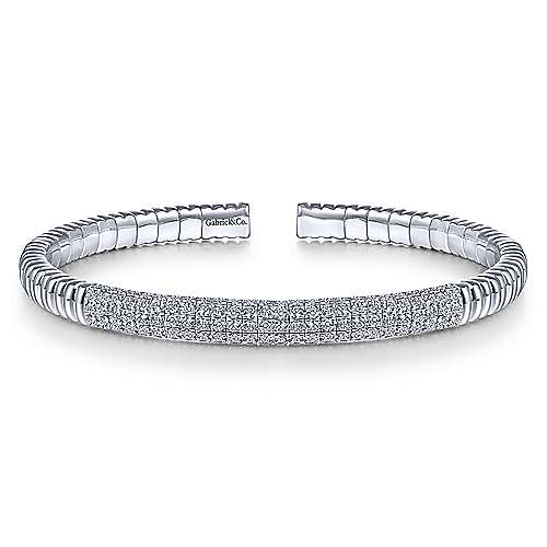 14K White Gold Cuff Bracelet with Diamond Pavé Station