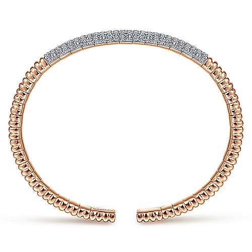 14K Rose Gold Cuff Bracelet with Diamond Pavé Station