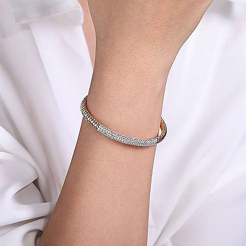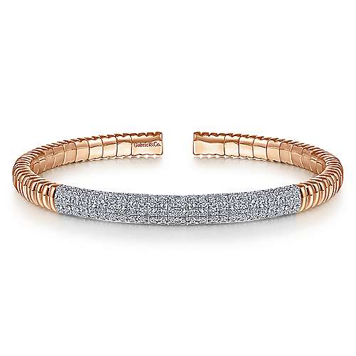 14K Rose Gold Cuff Bangle with Diamond Pavé Center Station