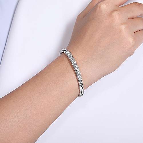 14K White Gold Cuff Bangle with Diamond Pavé Center Station