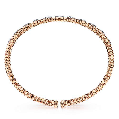 14K Rose Gold Bujukan Bead Cuff Bracelet with Pavé Diamond Connectors
