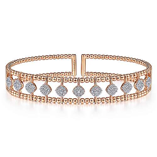 14K Rose Gold Bujukan Bead Cuff Bracelet with Pavé Diamond Connectors