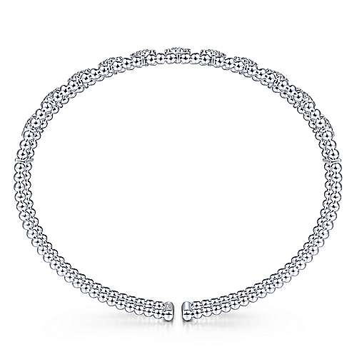 14K White Gold Bujukan Bead Cuff Bracelet with Pavé Diamond Connectors