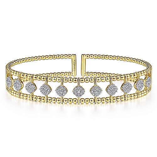 14K Yellow Gold Bujukan Bead Cuff Bracelet with Pavé Diamond Connectors