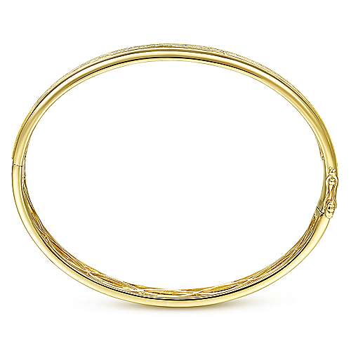 14K Yellow Gold High Polished Bangle with Diamond Inner Channel