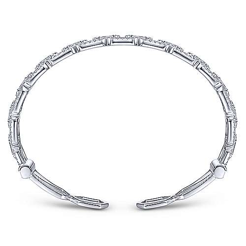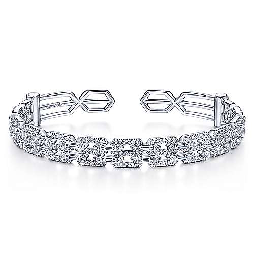 14K White Gold Diamond Link Cuff with Diamond Baguette Spacers