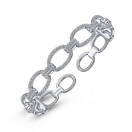 14K White Gold Diamond Pavé Chain Link Cuff Bracelet