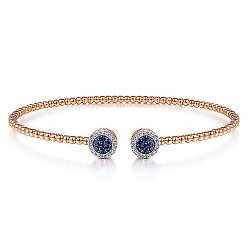 14K Rose Gold Bujukan Bead Cuff Bracelet with Sapphire and Diamond Halo Caps