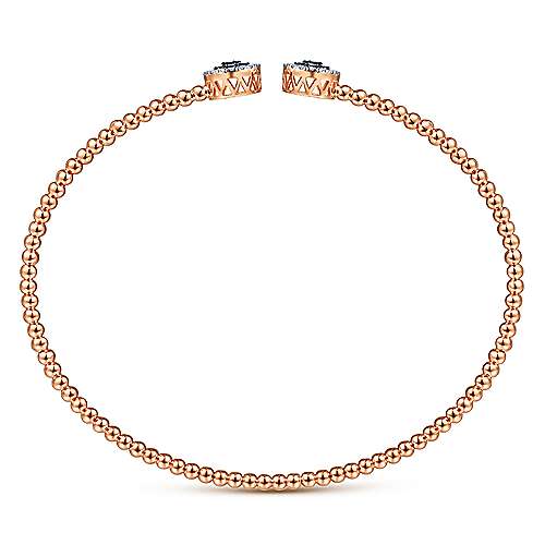 14K Rose Gold Bujukan Bead Cuff Bracelet with Sapphire and Diamond Halo Caps