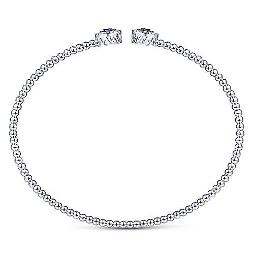 14K White Gold Bujukan Bead Cuff Bracelet with Sapphire and Diamond Halo Caps