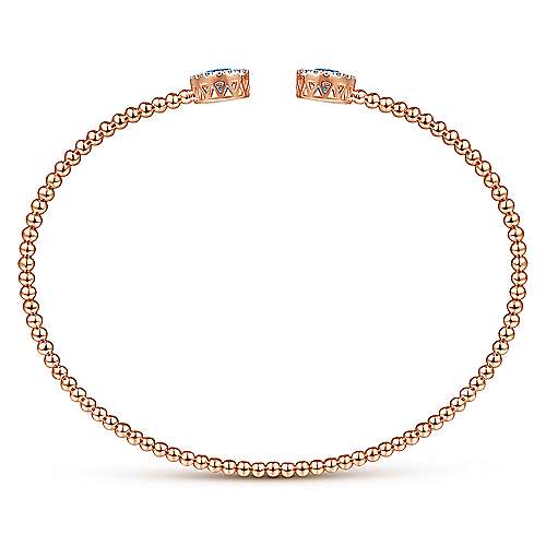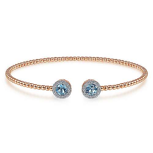 14K Rose Gold Round Blue Topaz and Diamond Halo Bujukan Bangle