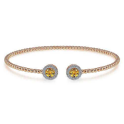 14K Rose Gold Round Citrine and Diamond Halo Bujukan Bangle