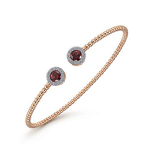 14K Rose Gold Round Garnet and Diamond Halo Bujukan Bangle