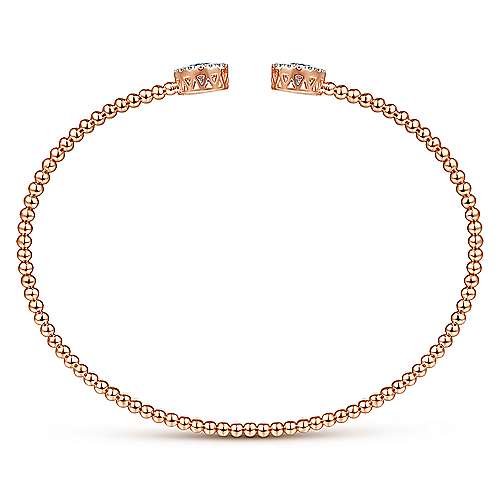 14K Rose Gold Round Sky Blue Topaz and Diamond Halo Bujukan Bangle