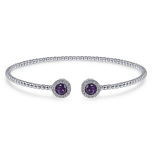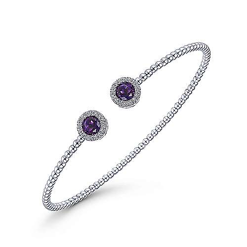 14K White Gold Round Amethyst and Diamond Halo Bujukan Bangle